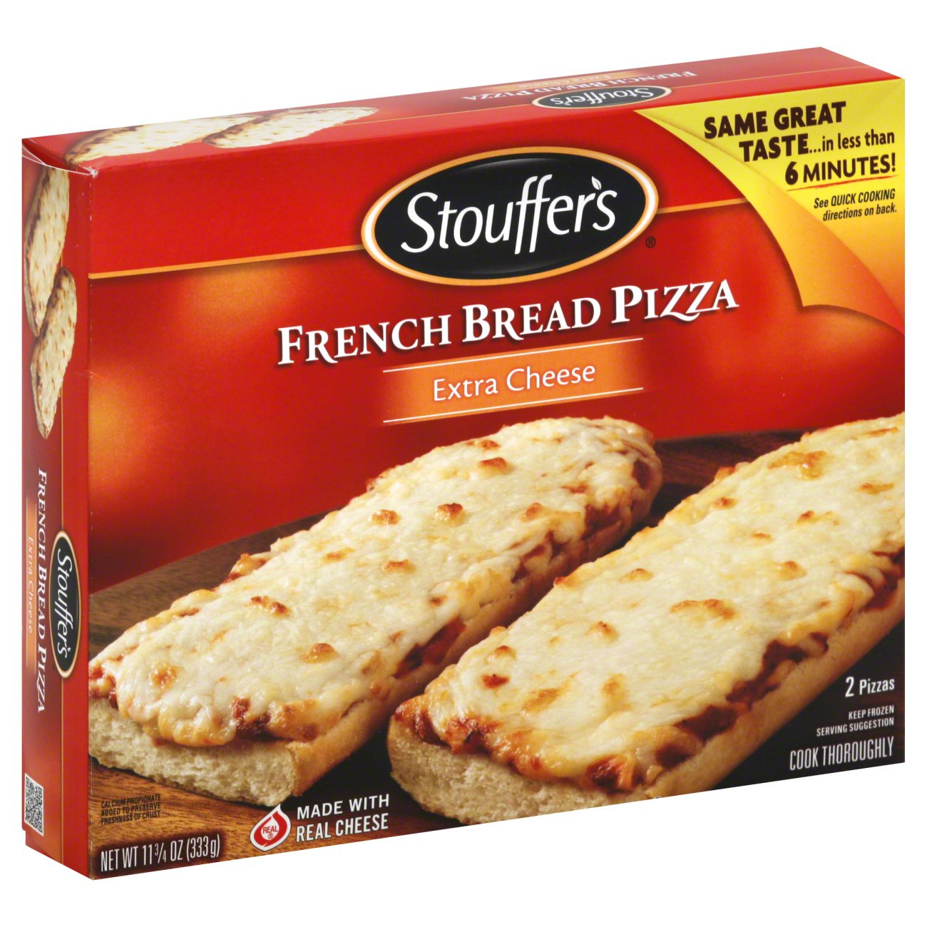 Remove pizza (s) from box & wrap. Cook in oven 5 minutes. Stouffer ’ s french bread pizza are oven baked for a golden crisp crust.